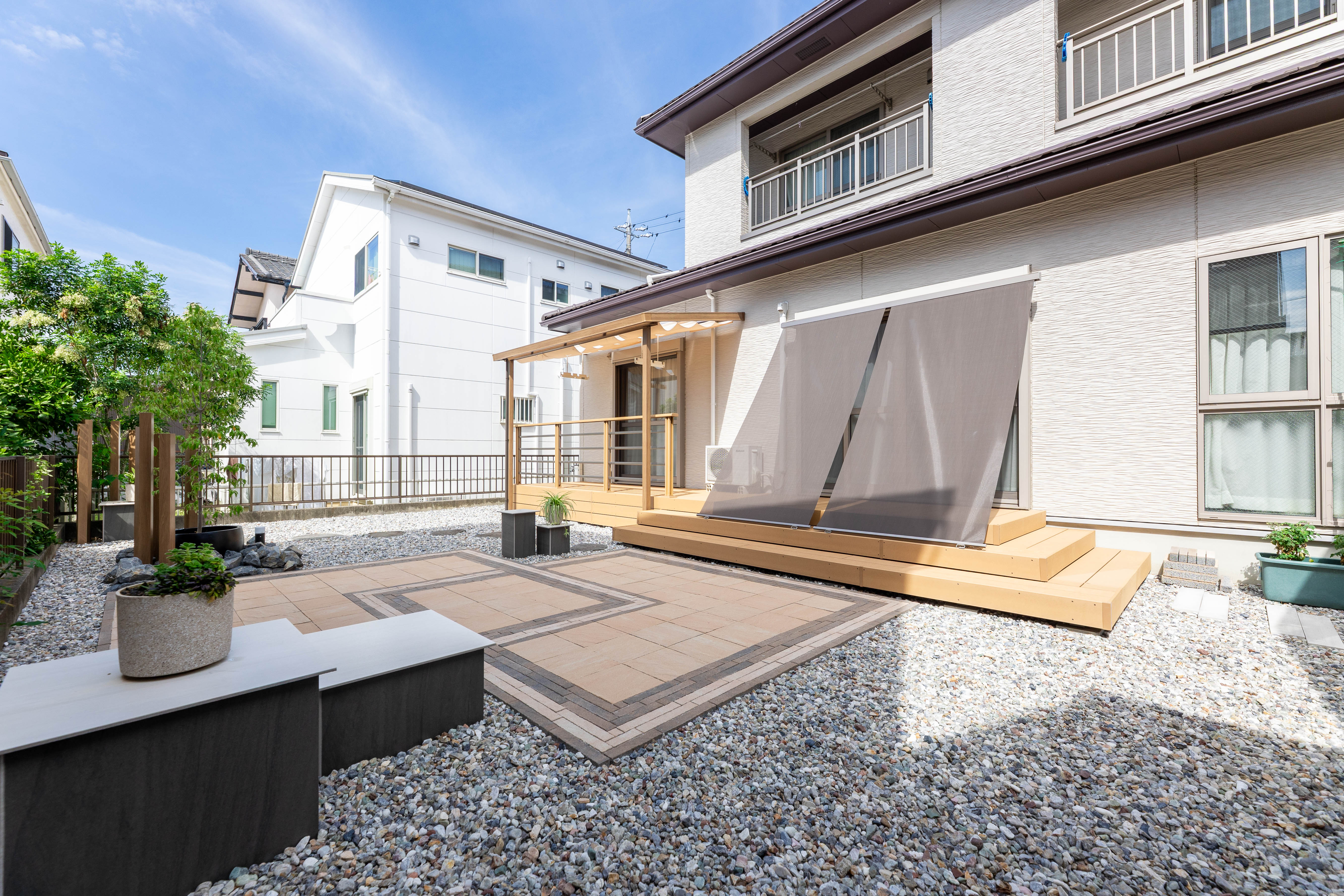囲われた庭で楽しむ デッキテラス